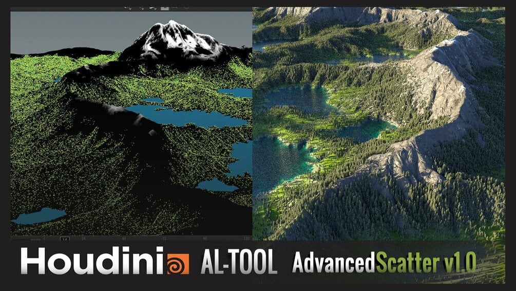 AL_advancedScatter : Ever dream of scattering trees, rocks, easily inside of houdini ? This tool is made for you. Slope, Height, custom object or attribute distribution. Control over density and scale on each features. (will add a forest scattering tutorial soon based on this tool)