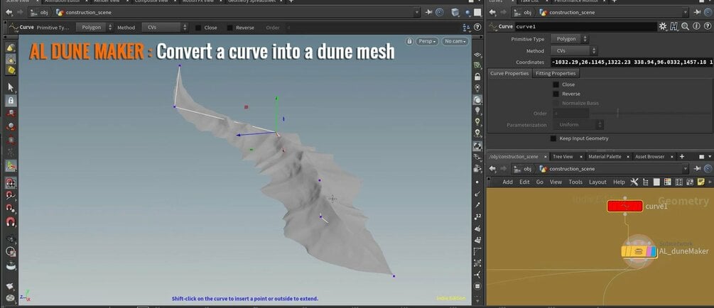 AL_dunemaker : Generate a dune model based on a curve plugged into the first input.